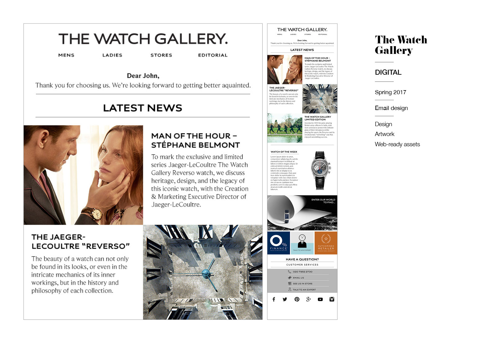 Whilst working at The Watch Gallery I worked alongside the Marketing team, creating presentations, email newsletters and social media design for various seasonal campaigns.